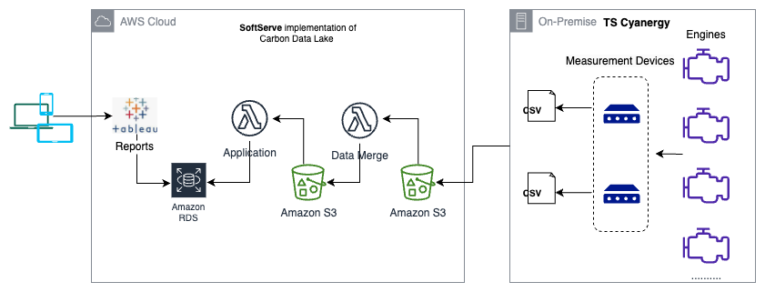 Tracking emissions efficiently and effectively is not easy. A specific challenge area is measurement and management of diesel engine emissions. Diesel engines are complex machines, and there is opportunity to capture multiple datasets from a single engine. The most common practice for calculating emissions from diesel engines is approximating emissions based on fuel volume consumed and relating that to data tables provided by an engine manufacturer. This approach leads to both over- and underreporting of emissions. Inaccurate measurement and reporting results in financial, legal, and/or reputational consequences for customers. SoftServe and TS Cyanergy partnered to provide precise engine-emissions measurement, minimize risk associated with inaccurate reporting, and optimize engine performance for their customers in a solution powered by Amazon Web Services (AWS).
